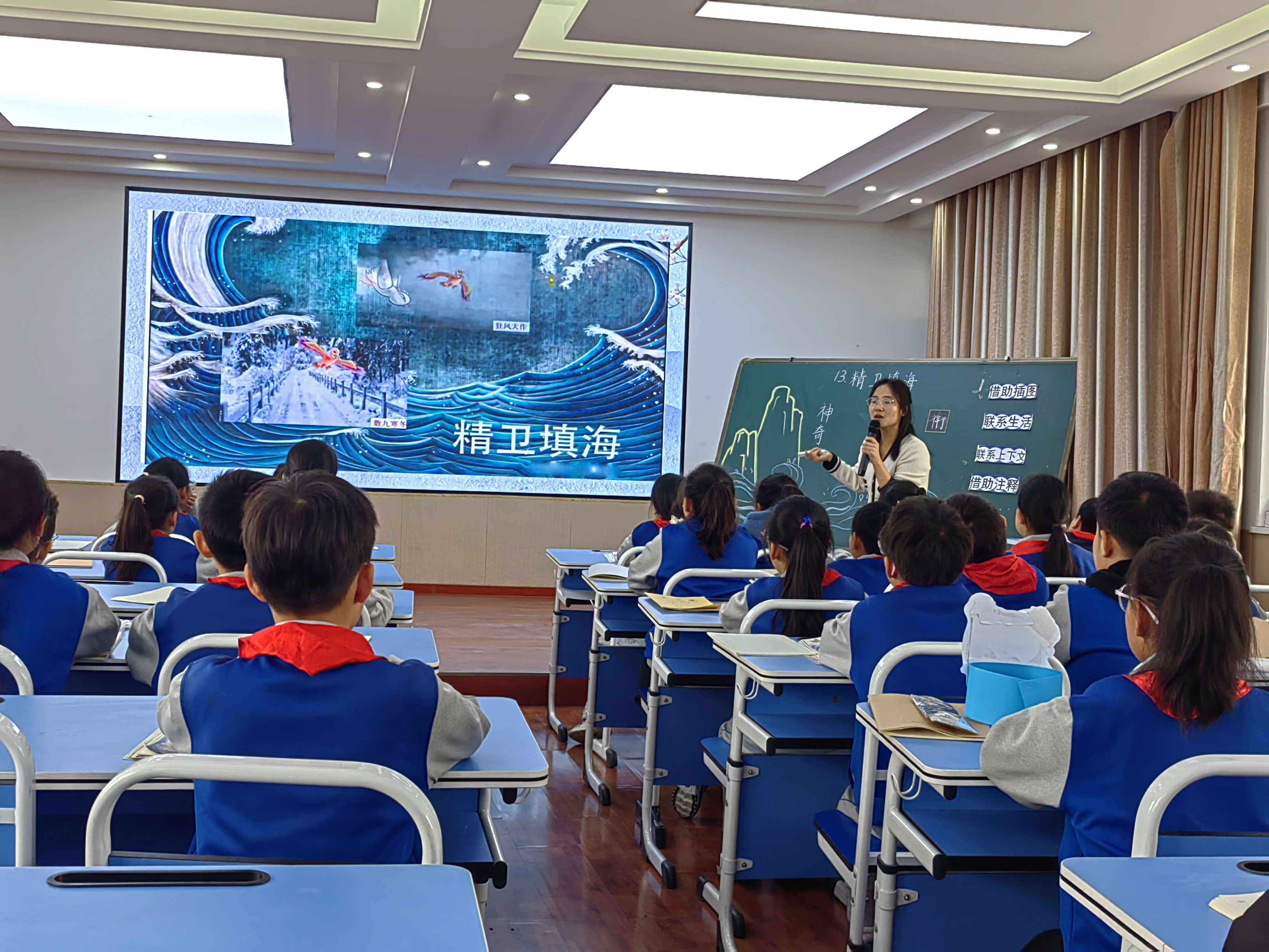 活动伊始点点策略网,两节精彩的《精卫填海》示范课拉开序幕。文昌路小学李琳老师以“读好、读懂、讲好、品味”神话为核心脉络,精心设计范读引路、分组品读、情景表演等环节,层层递进引导学生感受文言韵律与神话魅力;河苑街小学王芳老师创新采用“争当神话故事传讲人”为任务驱动,设置“创编”、“续编”环节,让学生在想象、感悟、拓展的趣味氛围中主动参与,高效达成学习目标。两堂课风格鲜明、亮点突出。